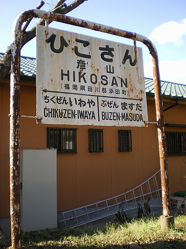 錆びてしまい、見向きもされなくなってしまった駅名表。