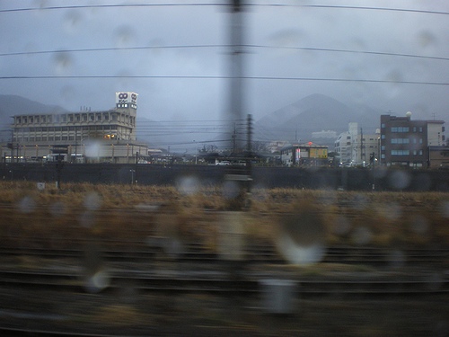 雨の中、寂しく佇む東小倉貨物駅跡。